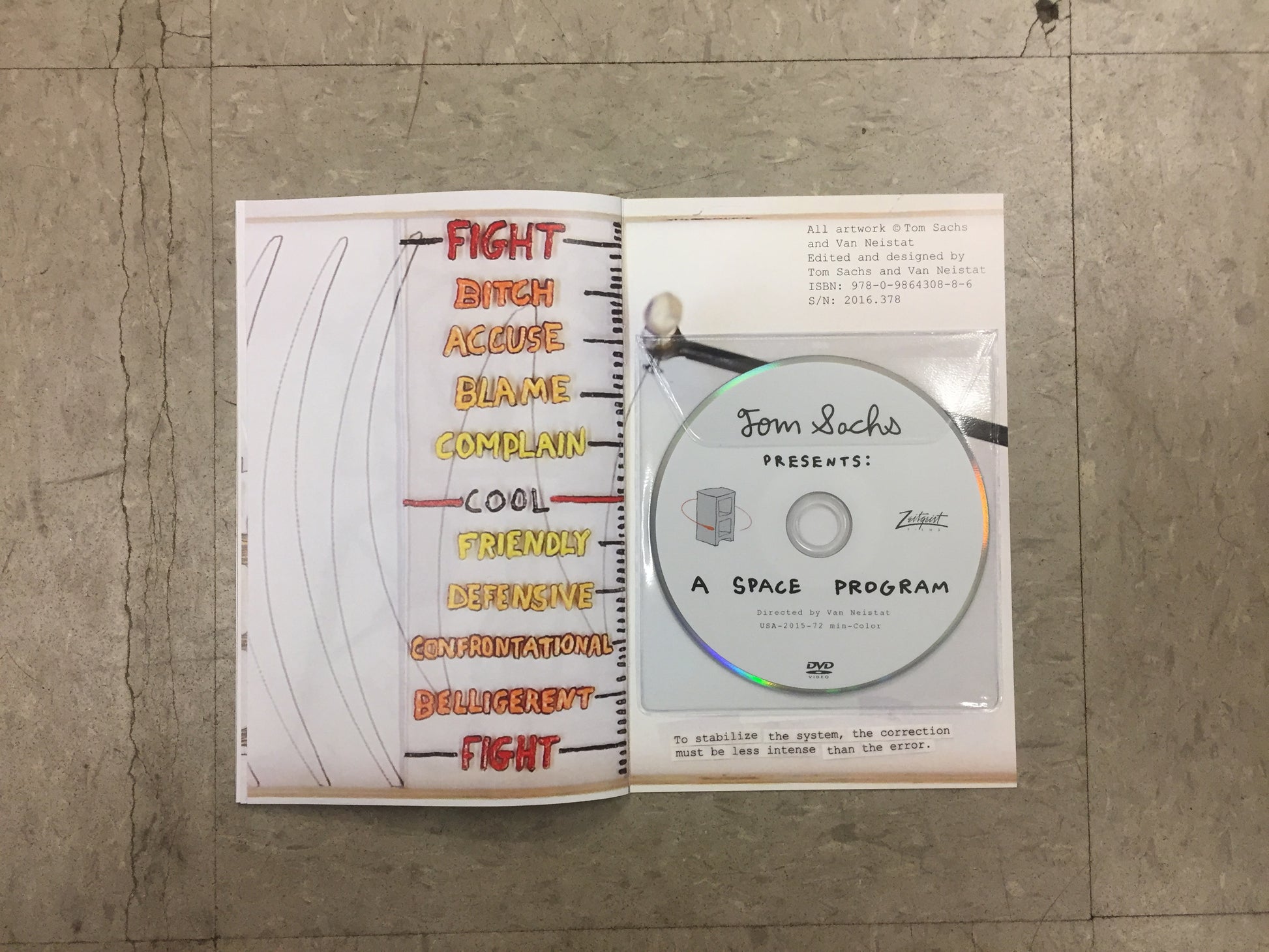 Heart Brain Feedback System by Tom Sachs and Van Neistat is a zine about the struggle between logic and emotion that occurs within us all. This special edition zine includes the DVD of A Space Program, in which the zine was originally featured.