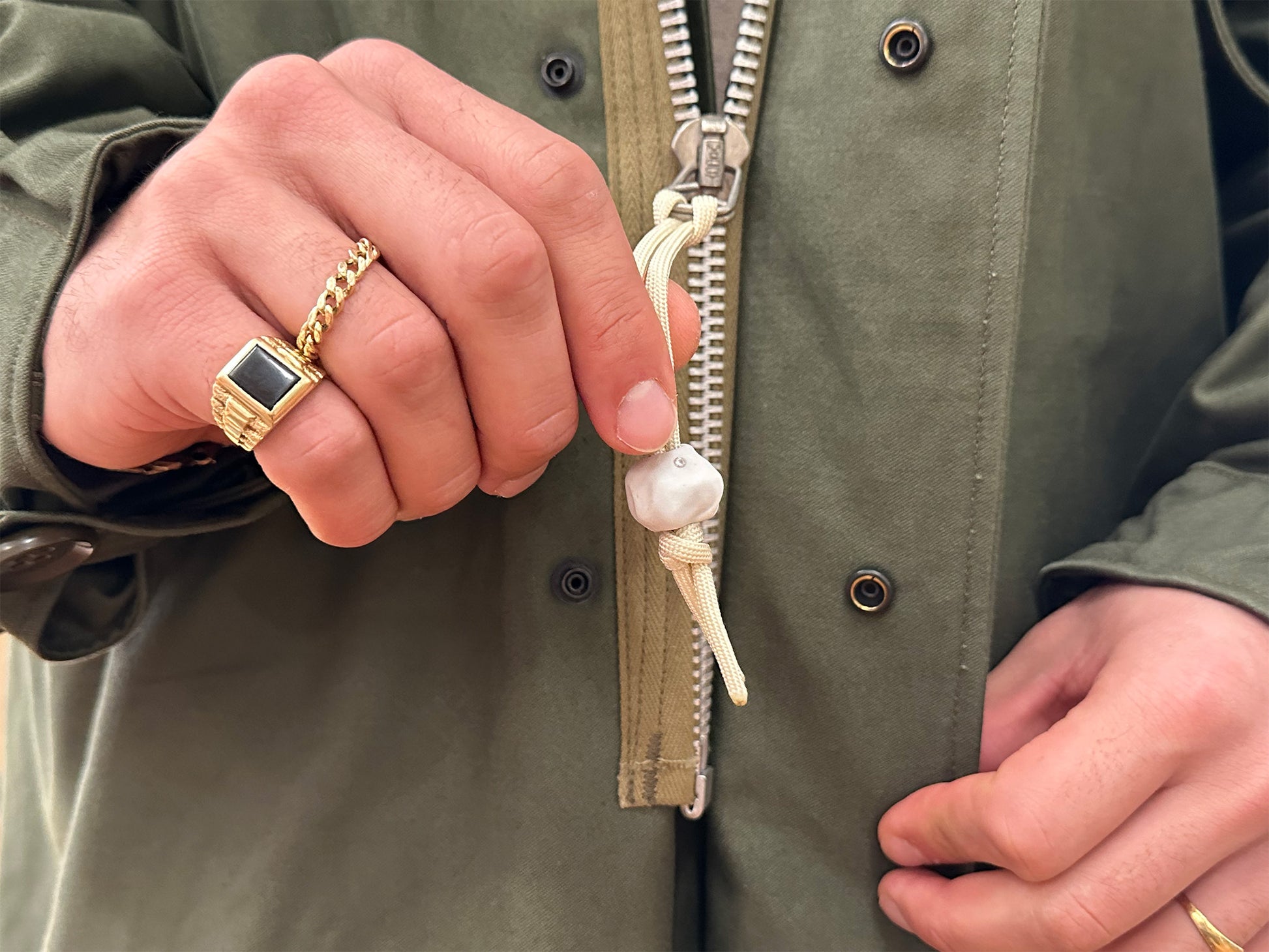 English porcelain bead set with a 0.03ct diamond strung on nylon paracord.