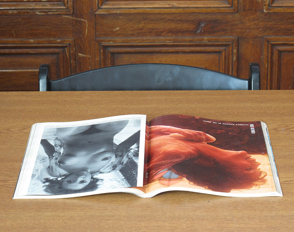 Aluminum paint hand painted over a vintage mens magazine.
